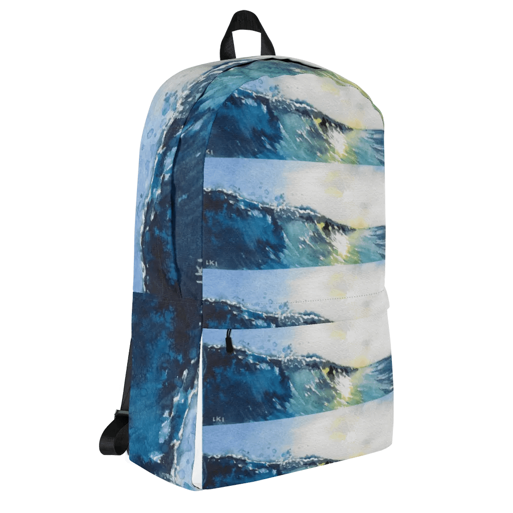 Make waves on campus with this exclusively designed backpack featuring LKI's "Rise."